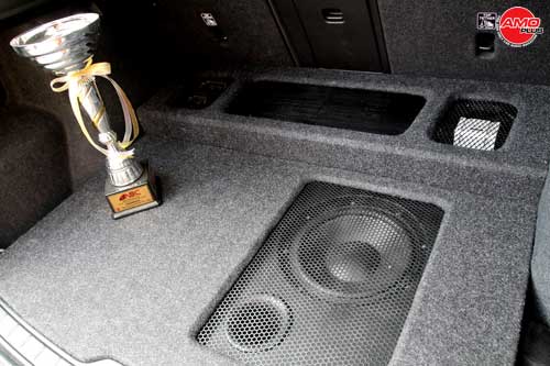 Jika kita melihat bagian bagasi belakang Volvo, maka terdapat space yang telah disediakan untuk subwoofer Ground Zero Reference, driver berukuran 10 inch yang mampu menghantarkan daya mencapai 500 Watt RMS, dimana subwoofer ini dikemas dalam enclosure custom dengan konsep bass-reflex dengan port. Dan untuk mem-boost sub ini maka digunakan sebuah power amplifier Helix P Two, sebuah penguat daya  kelas D yang memiliki daya cukup besar.