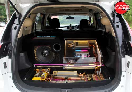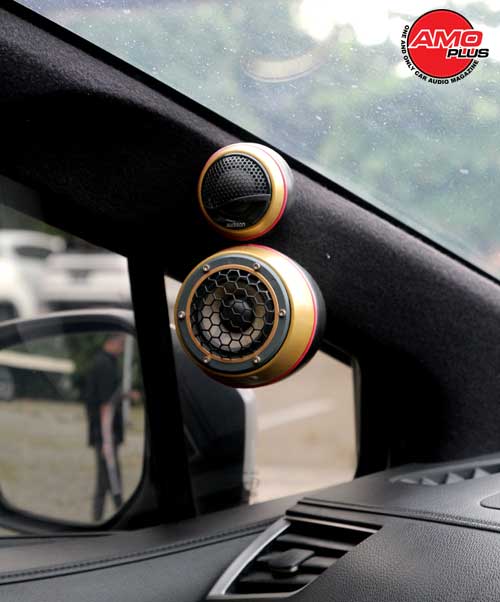 Dalam mobil tersebut, installer memasang sejumlah komponen audio mobil premium pilihan.