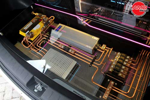 Baik processor maupun power amplifier, masing-masing menguatkan sinyal audio yang bakal direproduksi deretan speaker dalam konsep 3 way dan subwoofer. Lebih rinci, amplifier Hertz ML Power 4 men-drive speaker Full Range F51 dan speaker Mid Bass Dominations ES No 6. Sementara itu, amplifier Hertz ML Power 5 men-drive tweeter Auditions, Subwoofer ES Ecotes, dan Speaker Surround Carpediem Echo .